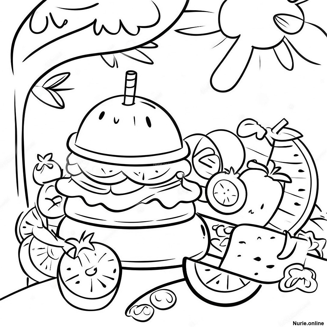 楽しい夏のピクニック 塗り絵の印刷可能なPDFをダウンロードする