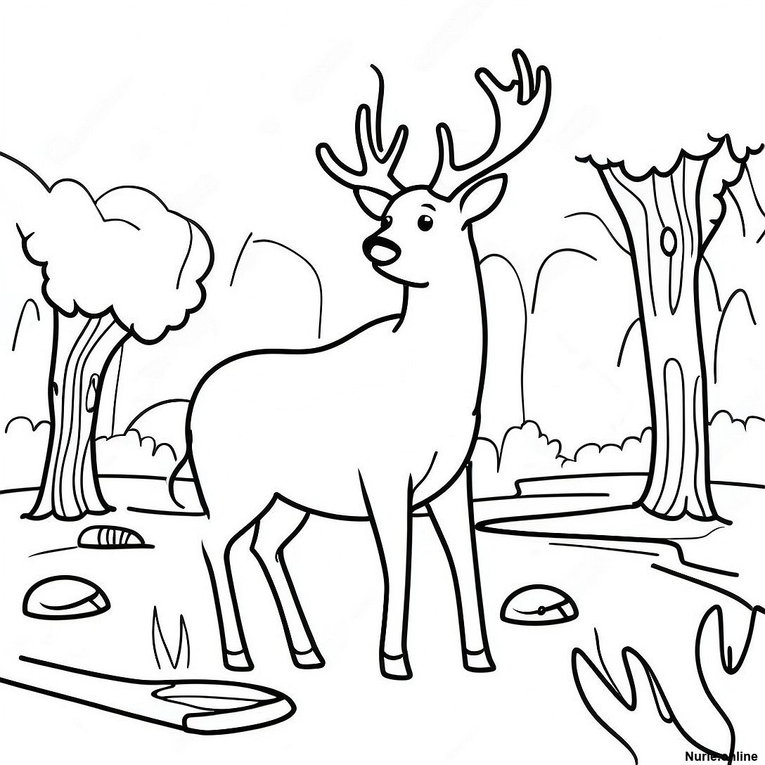 鹿の狩猟冒険 塗り絵の印刷可能なPDFをダウンロードする