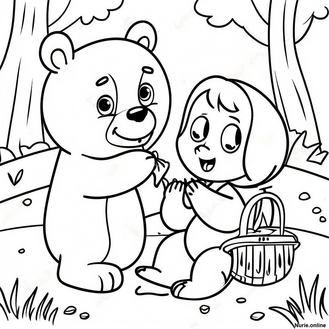 マシャとクマのピクニック塗り絵の印刷可能なPDFをダウンロードする