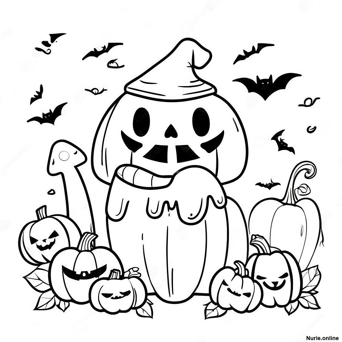 美しいハロウィンの塗り絵の印刷可能なPDFをダウンロードする