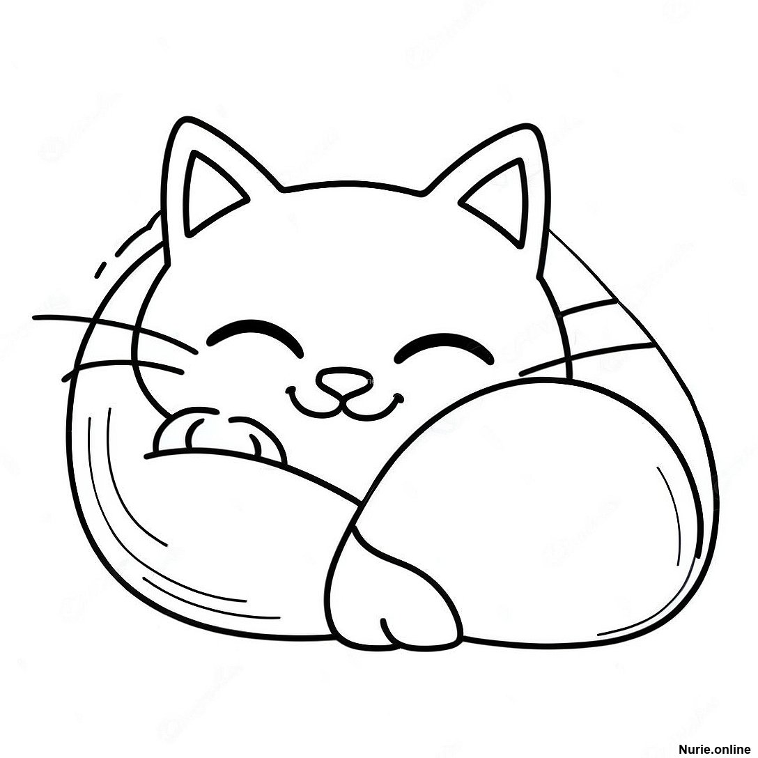眠そうなアニメ猫の昼寝 塗り絵の印刷可能なPDFをダウンロードする