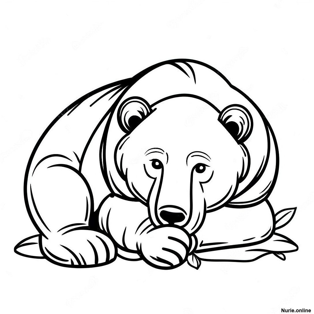 眠そうなグリズリーベアの昼寝の塗り絵の印刷可能なPDFをダウンロードする