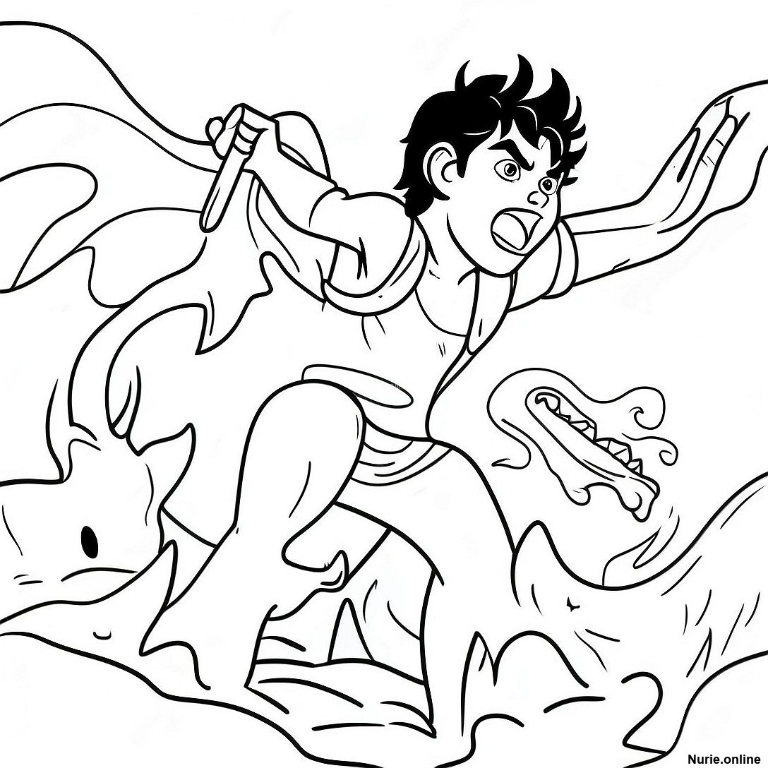 モンスターと戦うパーシー・ジャクソンの塗り絵