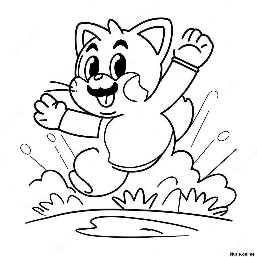 冒険好きな猫マリオのジャンプ塗り絵の印刷可能なPDFをダウンロードする