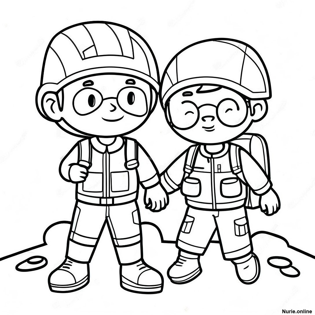 冒険好きな男の子と女の子の塗り絵の印刷可能なPDFをダウンロードする
