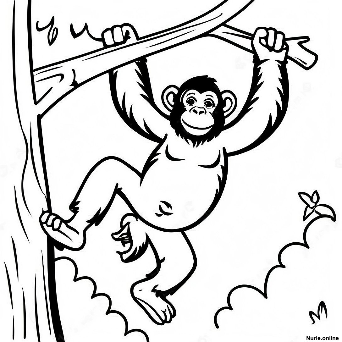 木からぶら下がるチンパンジー 塗り絵の印刷可能なPDFをダウンロードする