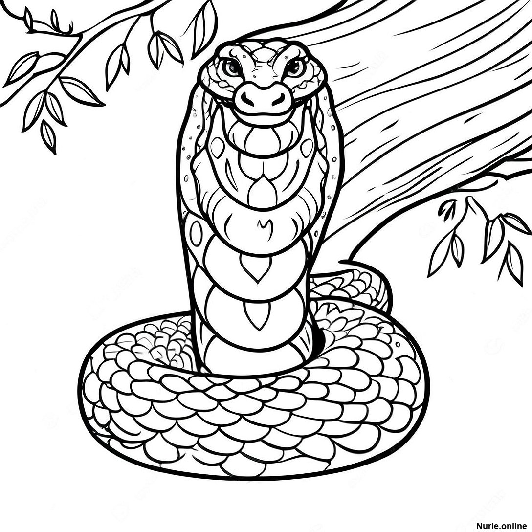 木に巻きついたアナコンダの塗り絵の印刷可能なPDFをダウンロードする