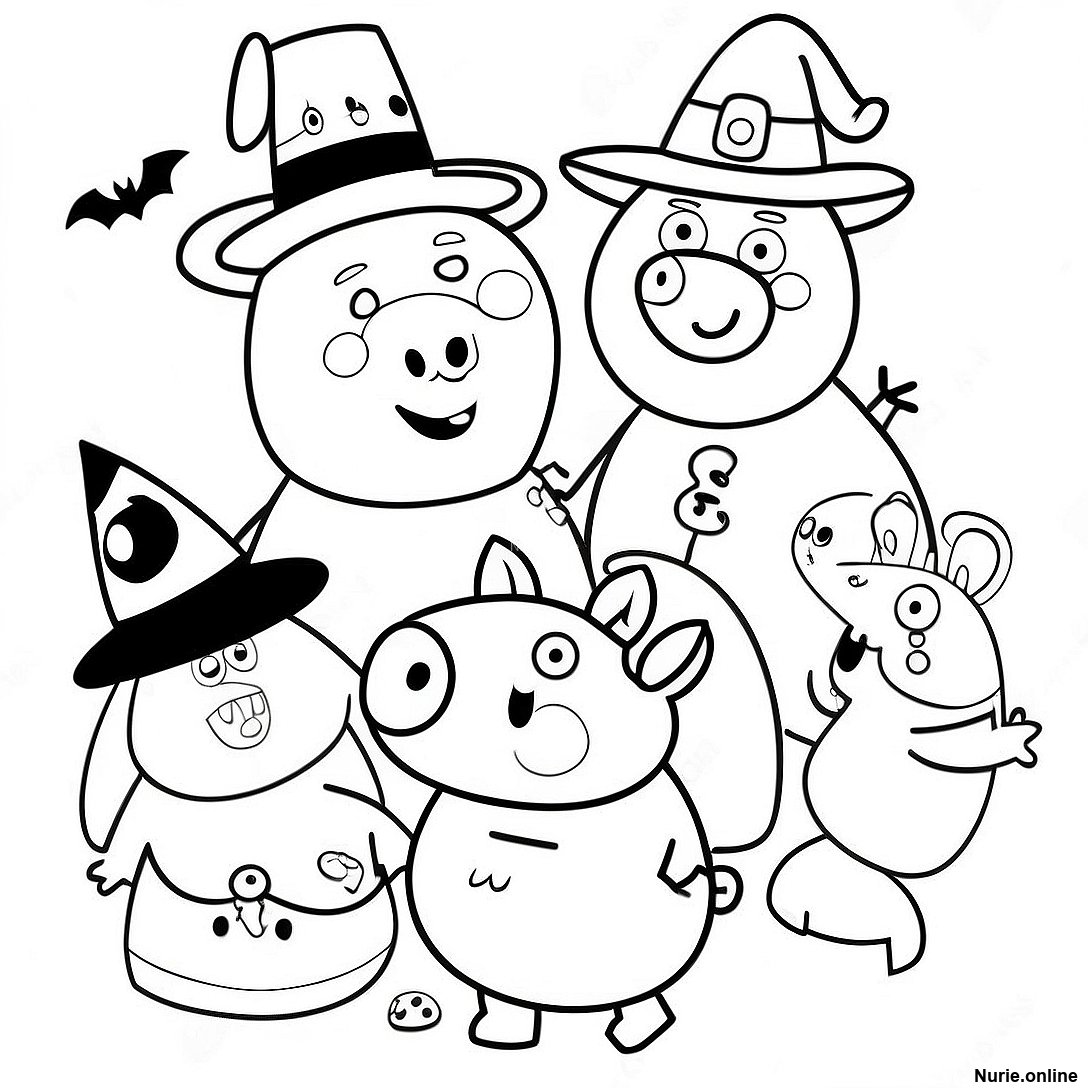 ペッパピッグと友達のハロウィンパーティーの塗り絵の印刷可能なPDFをダウンロードする