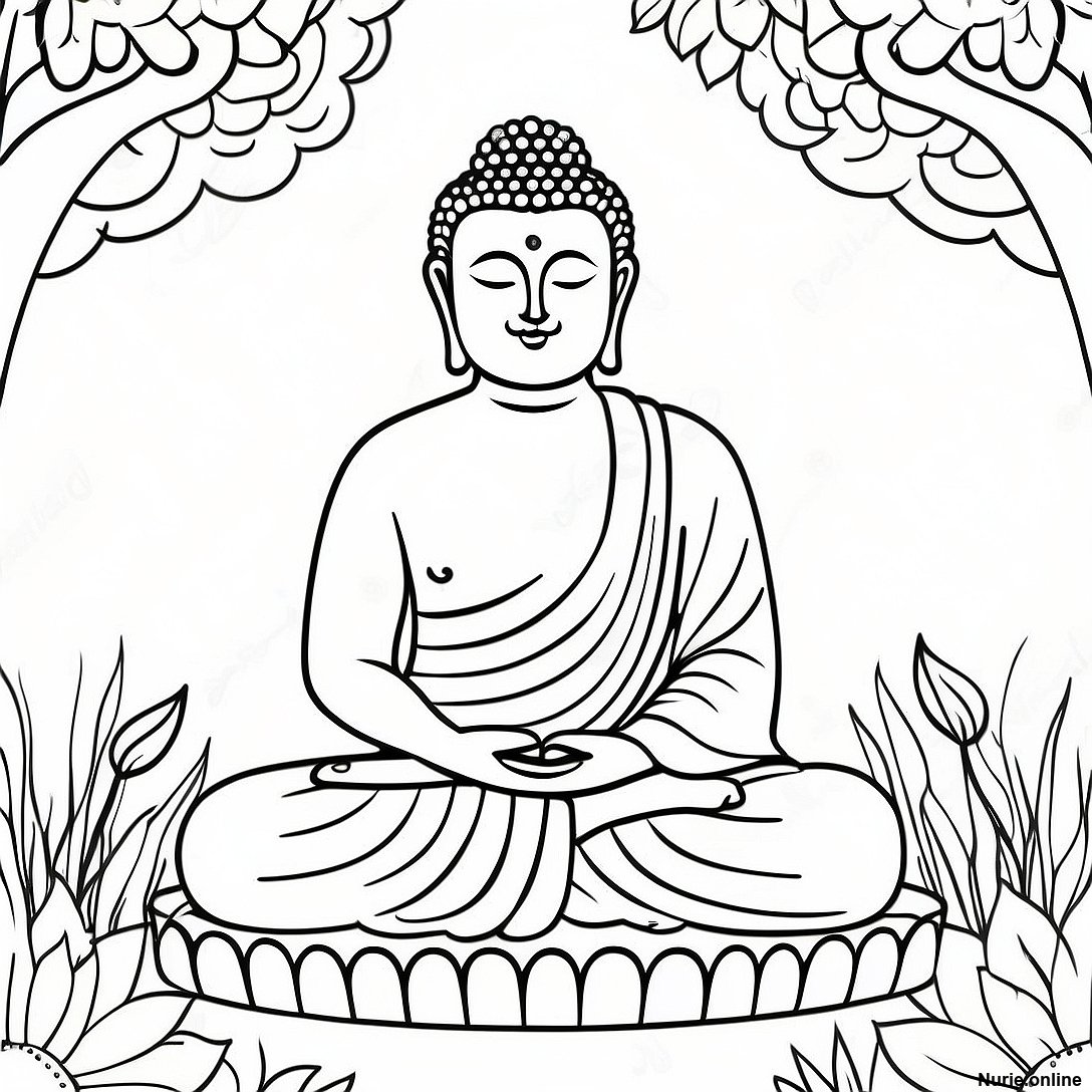 平和な庭の仏の塗り絵の印刷可能なPDFをダウンロードする