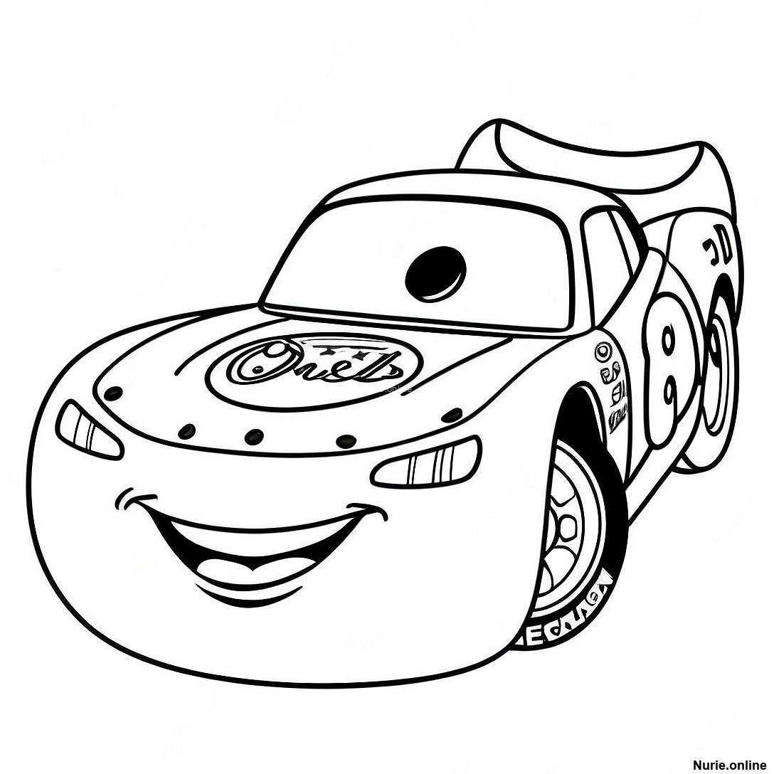 ライトニング・マックイーンが大きな笑顔の塗り絵の印刷可能なPDFをダウンロードする