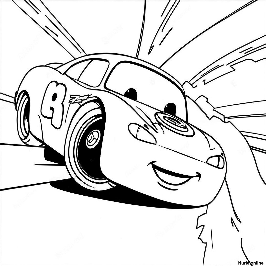 ライトニング・マックイーンが夕日でレースしている塗り絵の印刷可能なPDFをダウンロードする