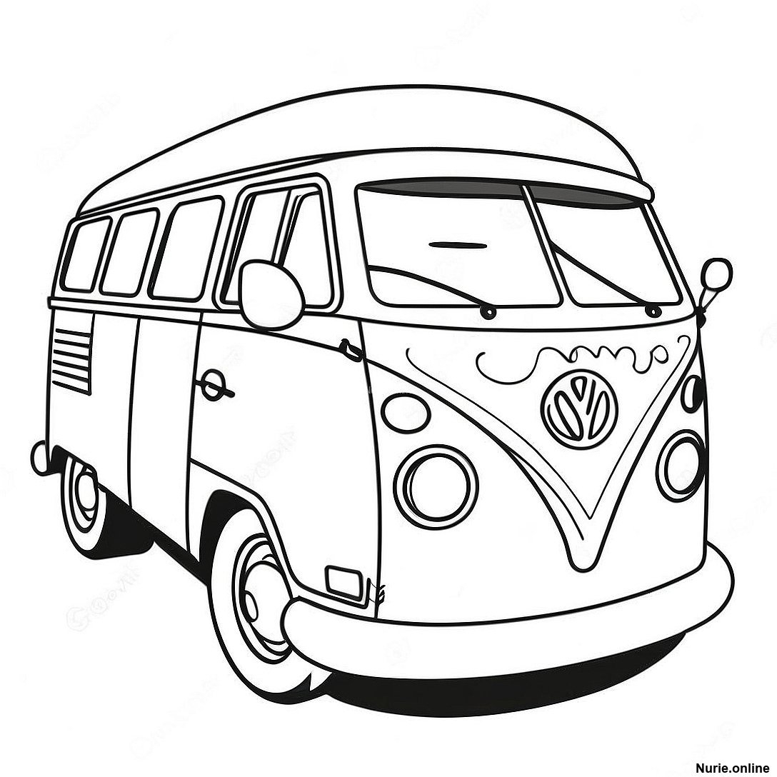 レトロなキャンパーバン 塗り絵の印刷可能なPDFをダウンロードする