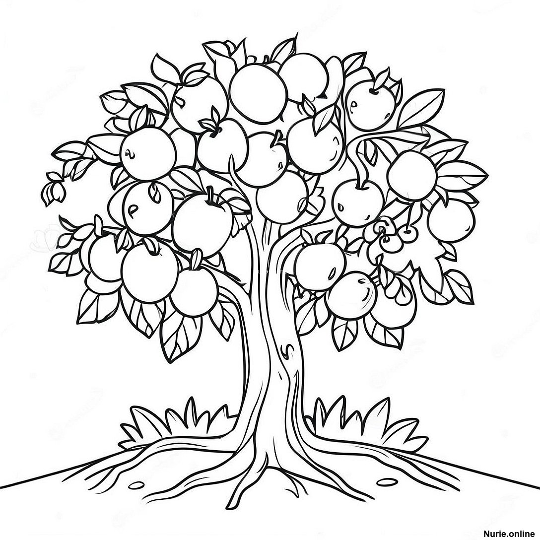 リンゴの木の塗り絵の印刷可能なPDFをダウンロードする