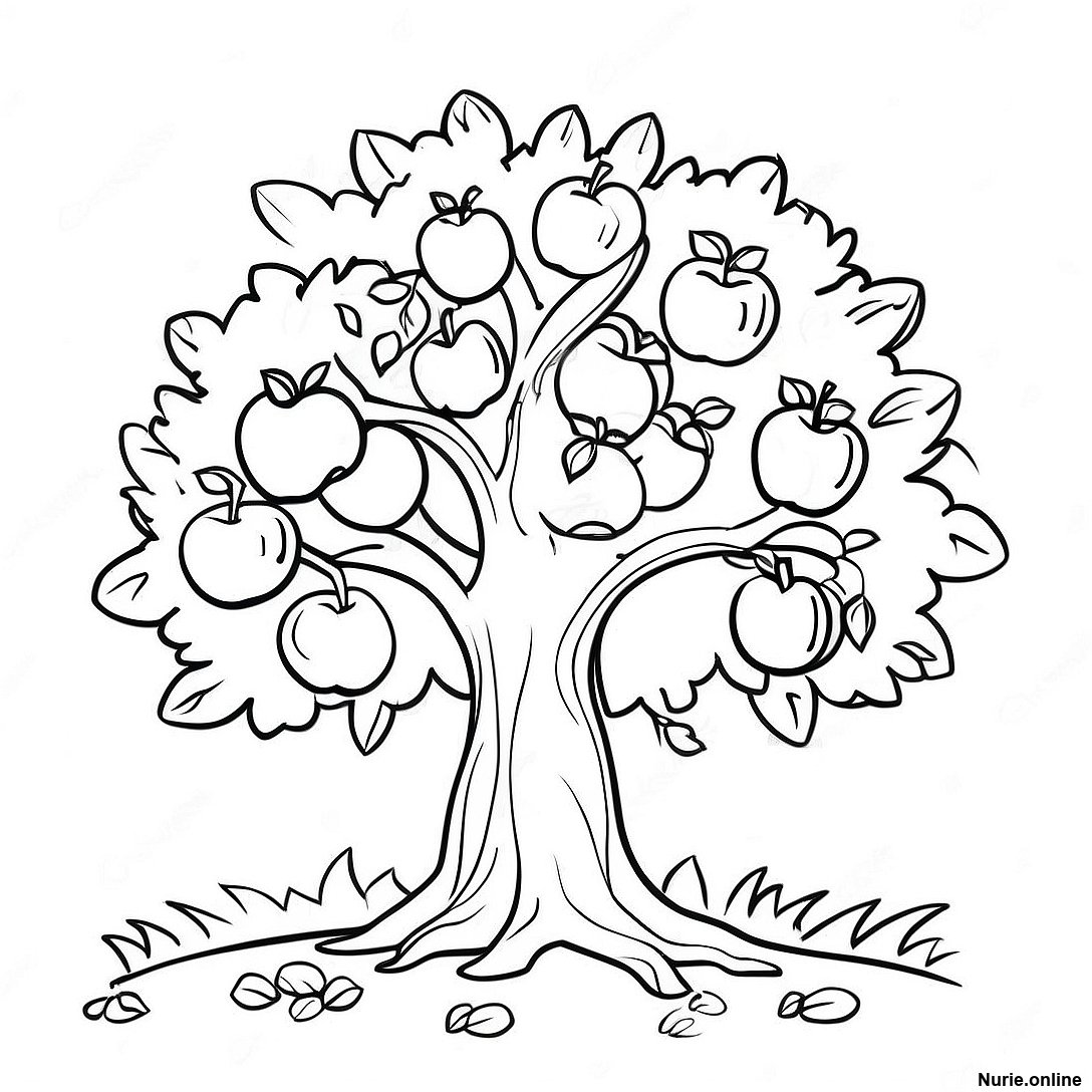 リンゴの木の塗り絵の印刷可能なPDFをダウンロードする
