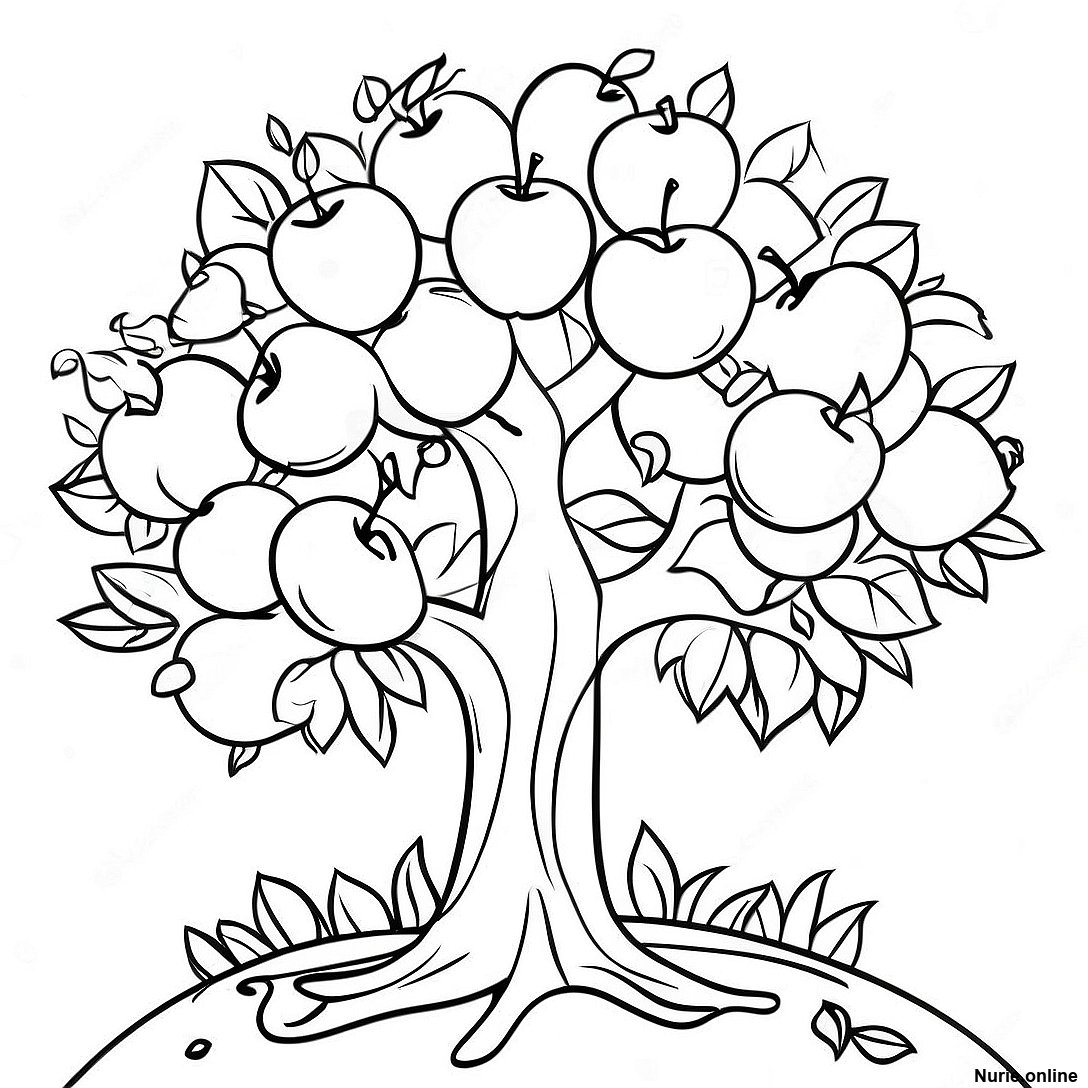 リンゴの木の塗り絵の印刷可能なPDFをダウンロードする