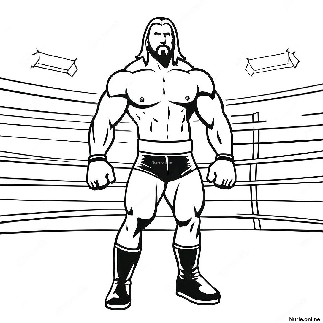 リングの中の3dトリプルhの塗り絵の印刷可能なPDFをダウンロードする