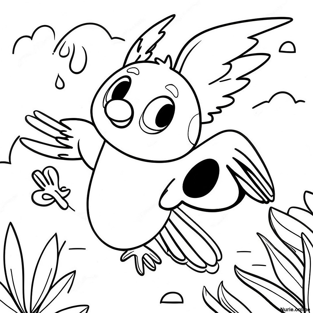 リオの友達が飛んでいる塗り絵の印刷可能なPDFをダウンロードする