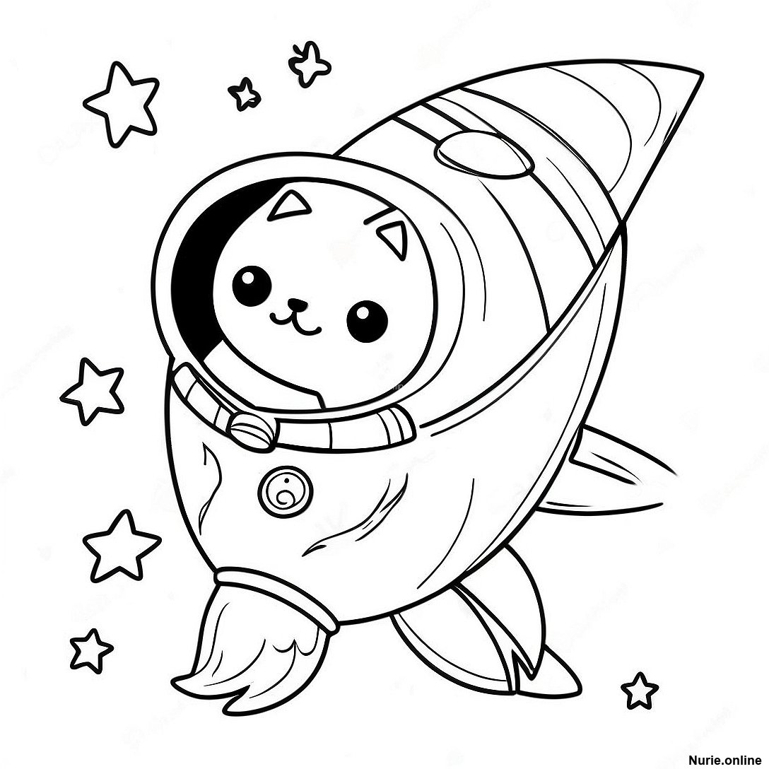 ロケットに乗った遊び心満載の宇宙猫の塗り絵