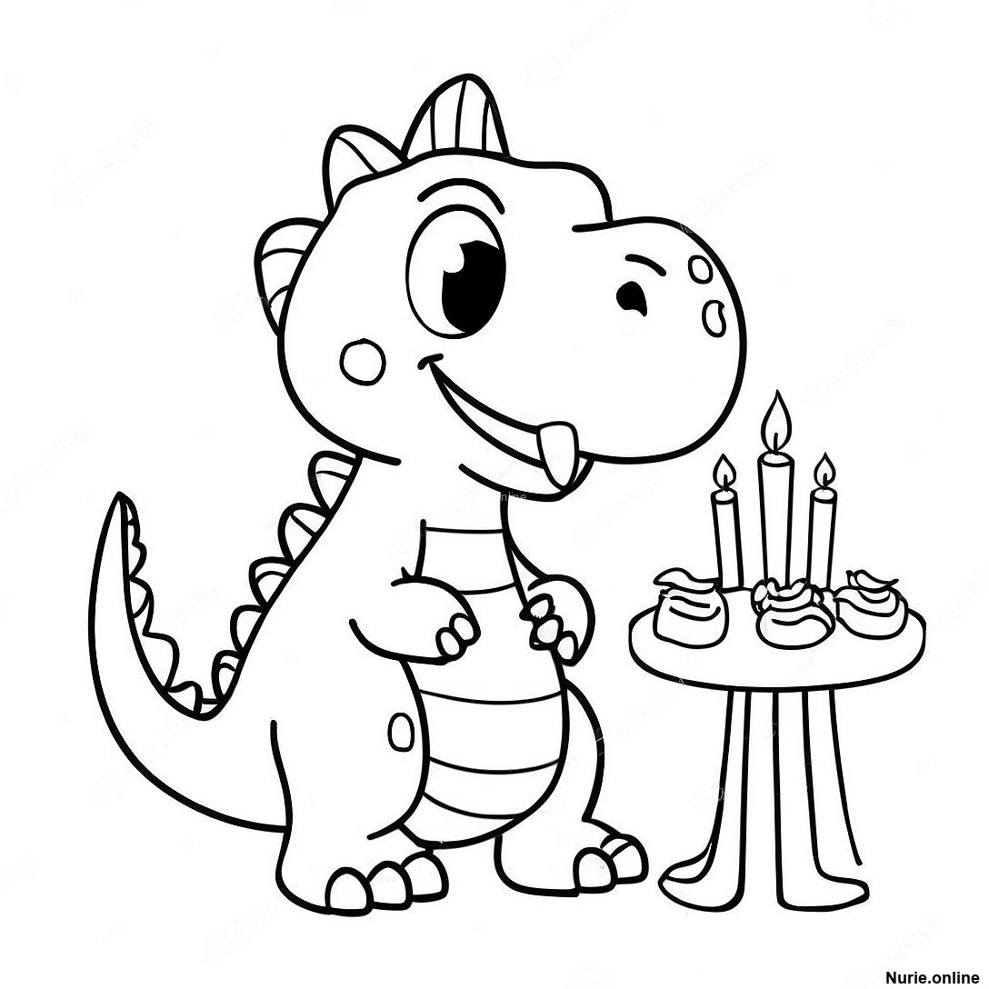ろうそくを吹き消す面白い恐竜の塗り絵の印刷可能なPDFをダウンロードする