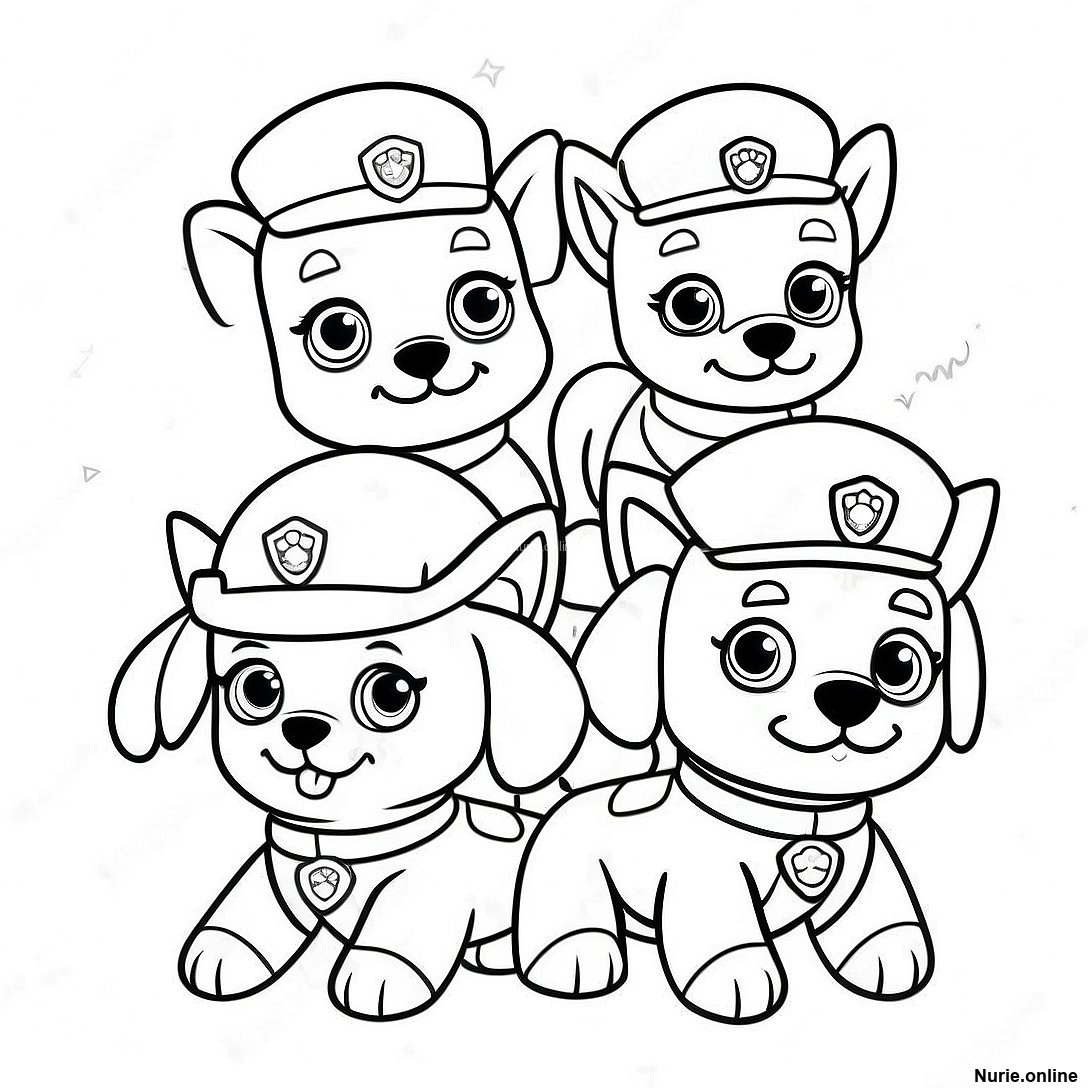 サンタ帽をかぶったパウ・パトロールの子犬 塗り絵の印刷可能なPDFをダウンロードする