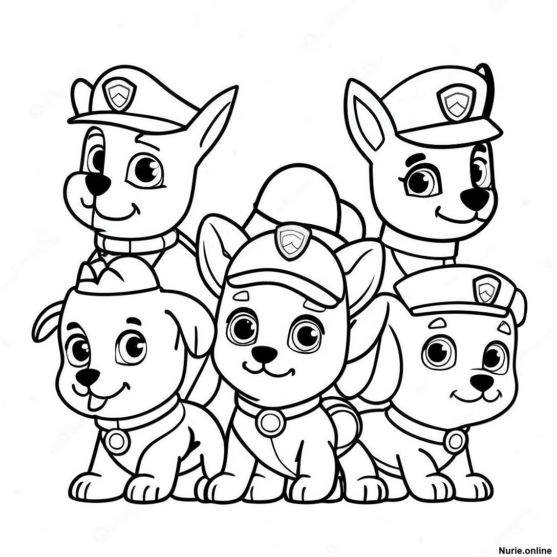 サンタ帽をかぶったパウ・パトロールの子犬 塗り絵