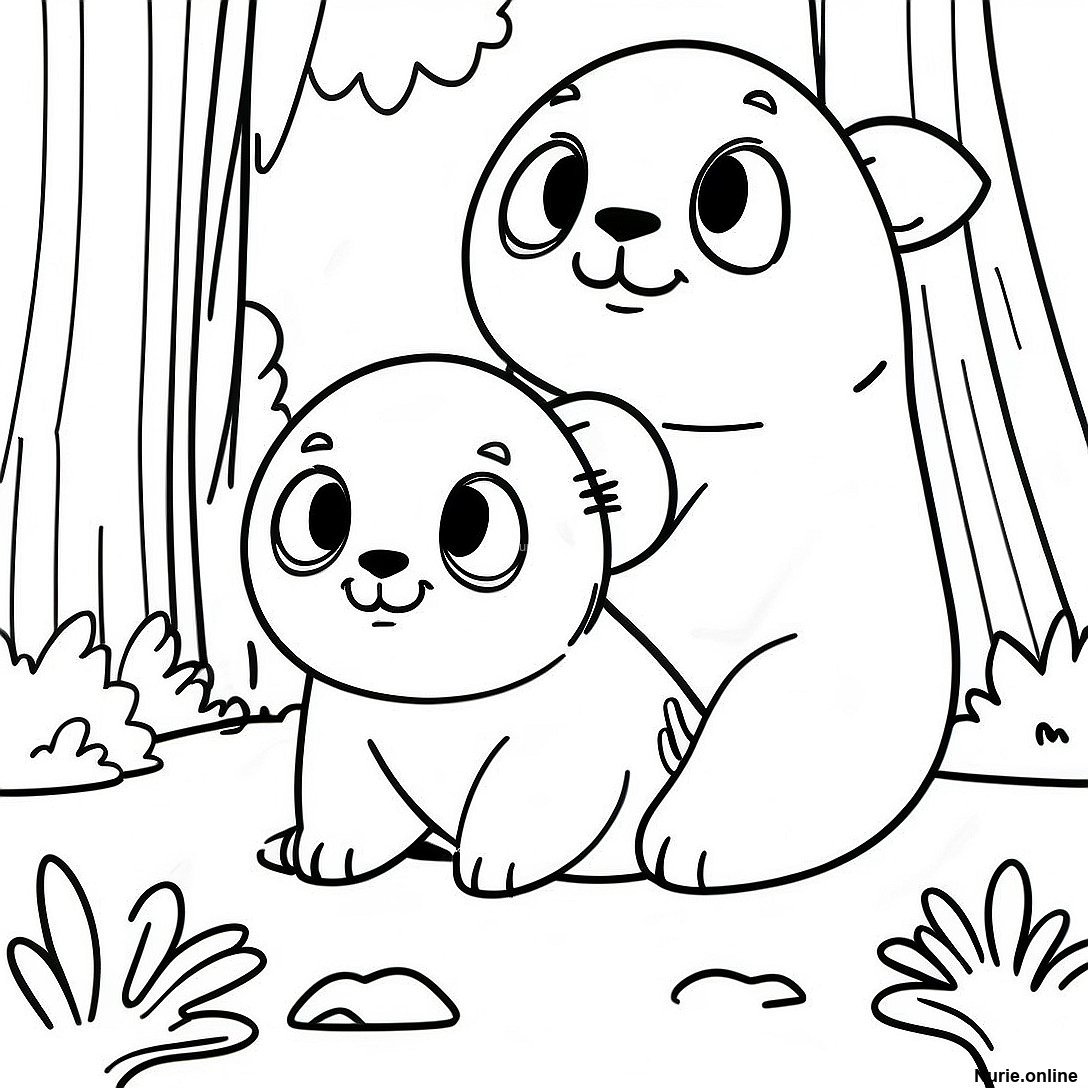 森の中のグリジーとレミングス 塗り絵の印刷可能なPDFをダウンロードする