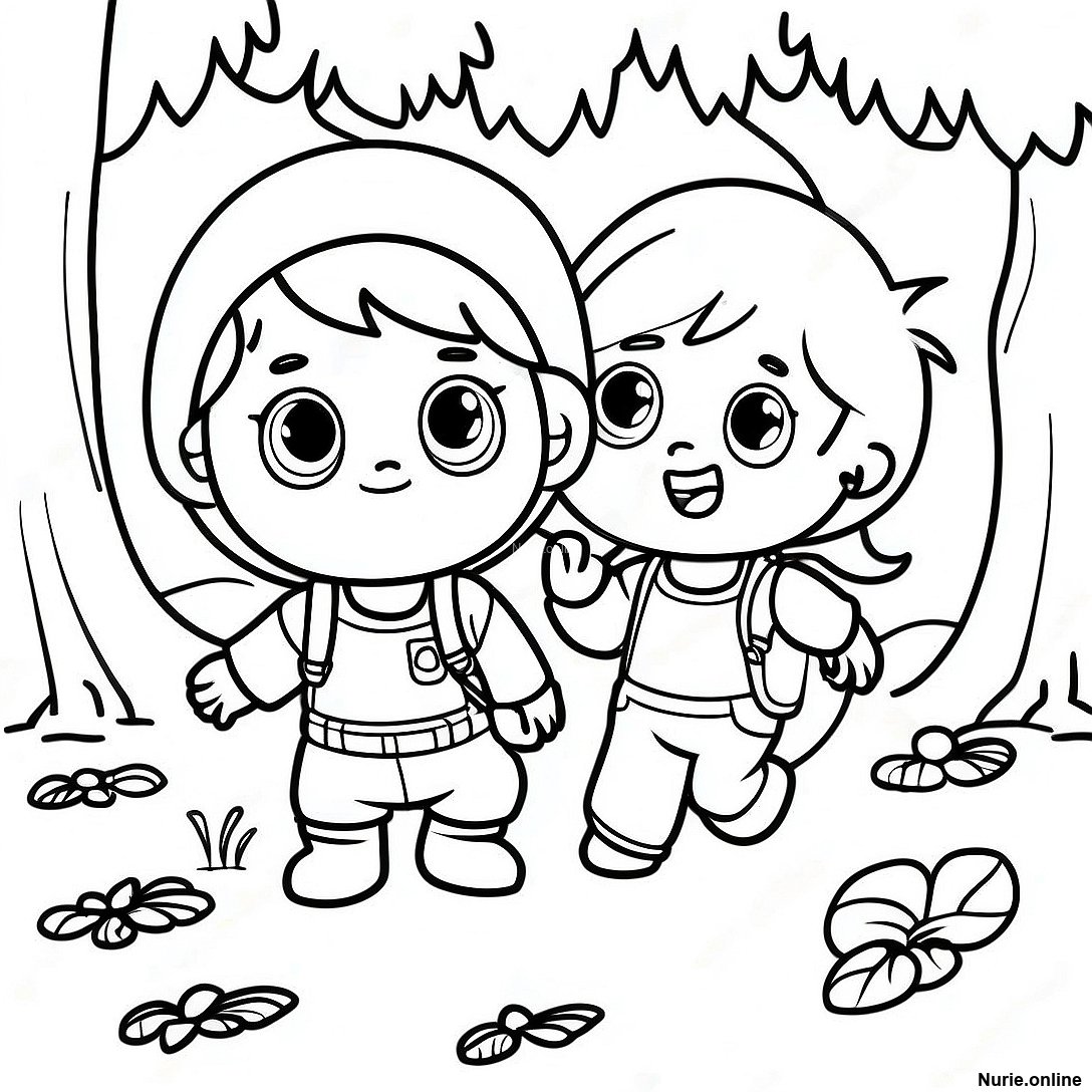森を探検する冒険好きな幼児の塗り絵の印刷可能なPDFをダウンロードする