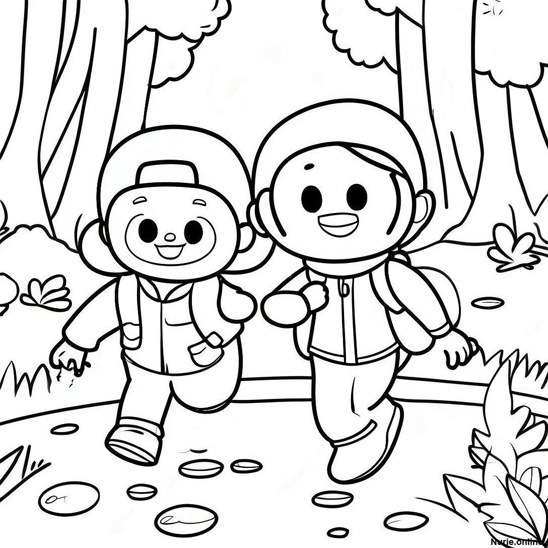 森を探検する冒険好きな幼児の塗り絵の印刷可能なPDFをダウンロードする