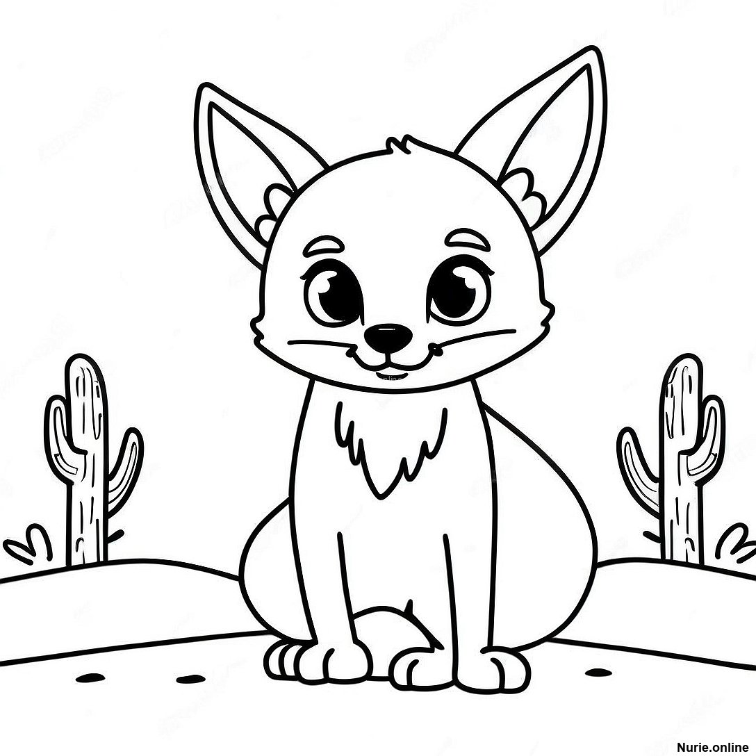 砂漠のかわいいフェネックギツネの塗り絵の印刷可能なPDFをダウンロードする
