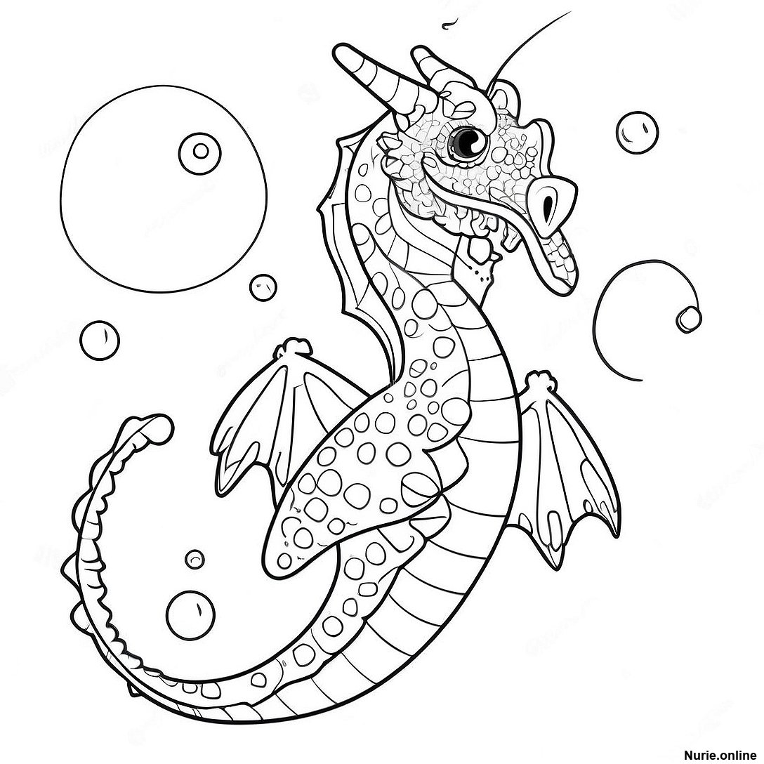 神秘的な海のドラゴンと泡の塗り絵の印刷可能なPDFをダウンロードする