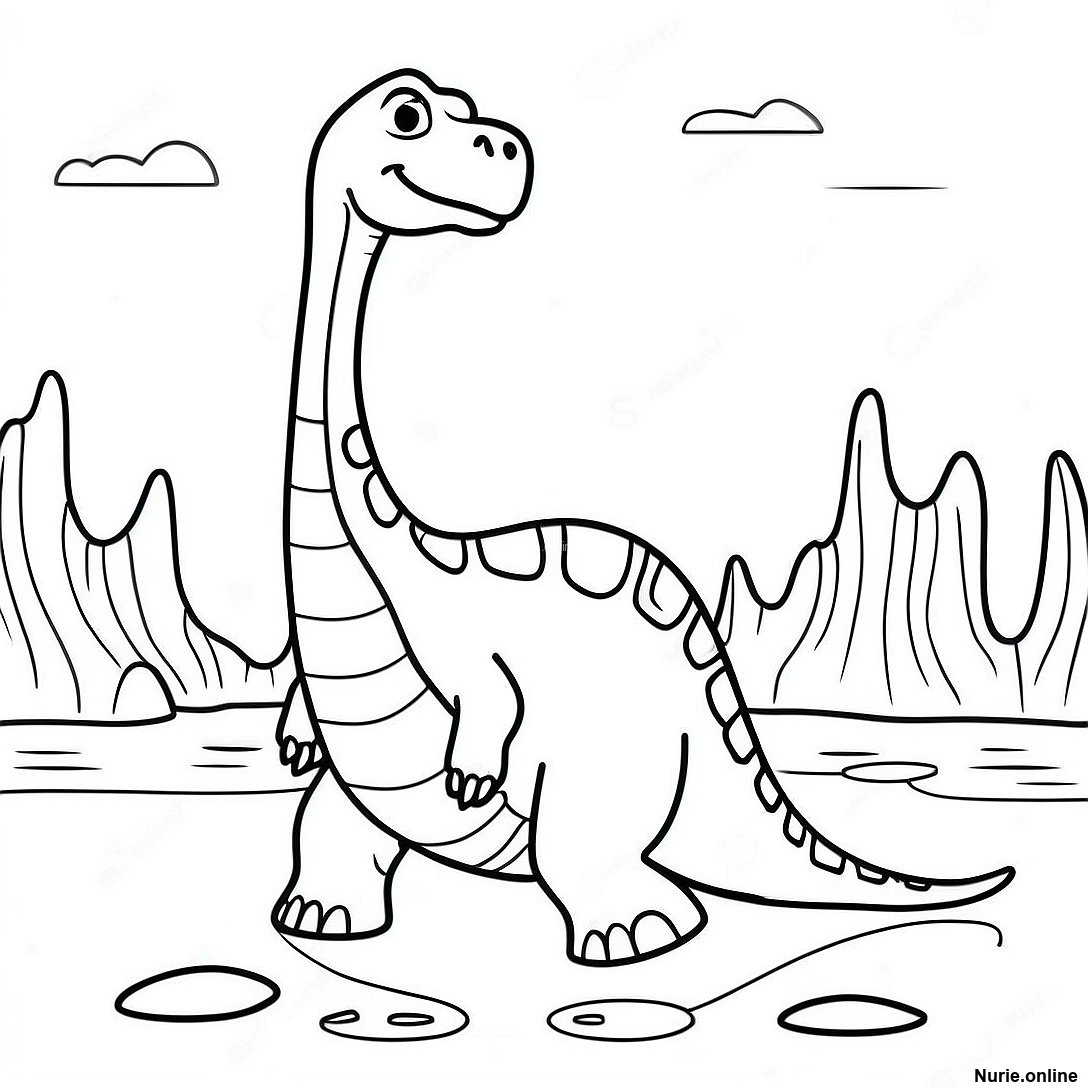 水の中を歩くブラキオサウルス塗り絵の印刷可能なPDFをダウンロードする