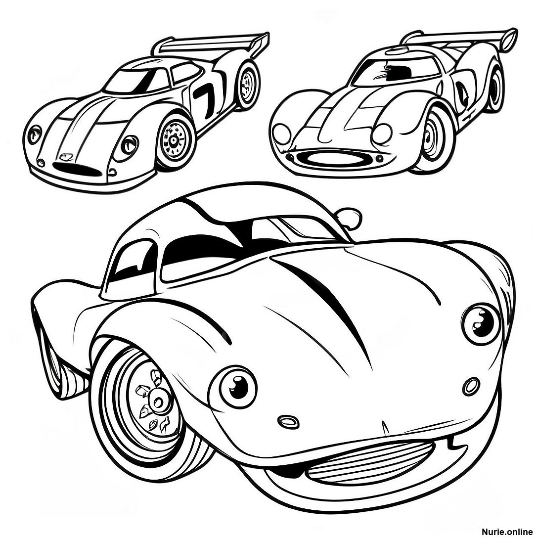 速いレーシングカーの塗り絵の印刷可能なPDFをダウンロードする