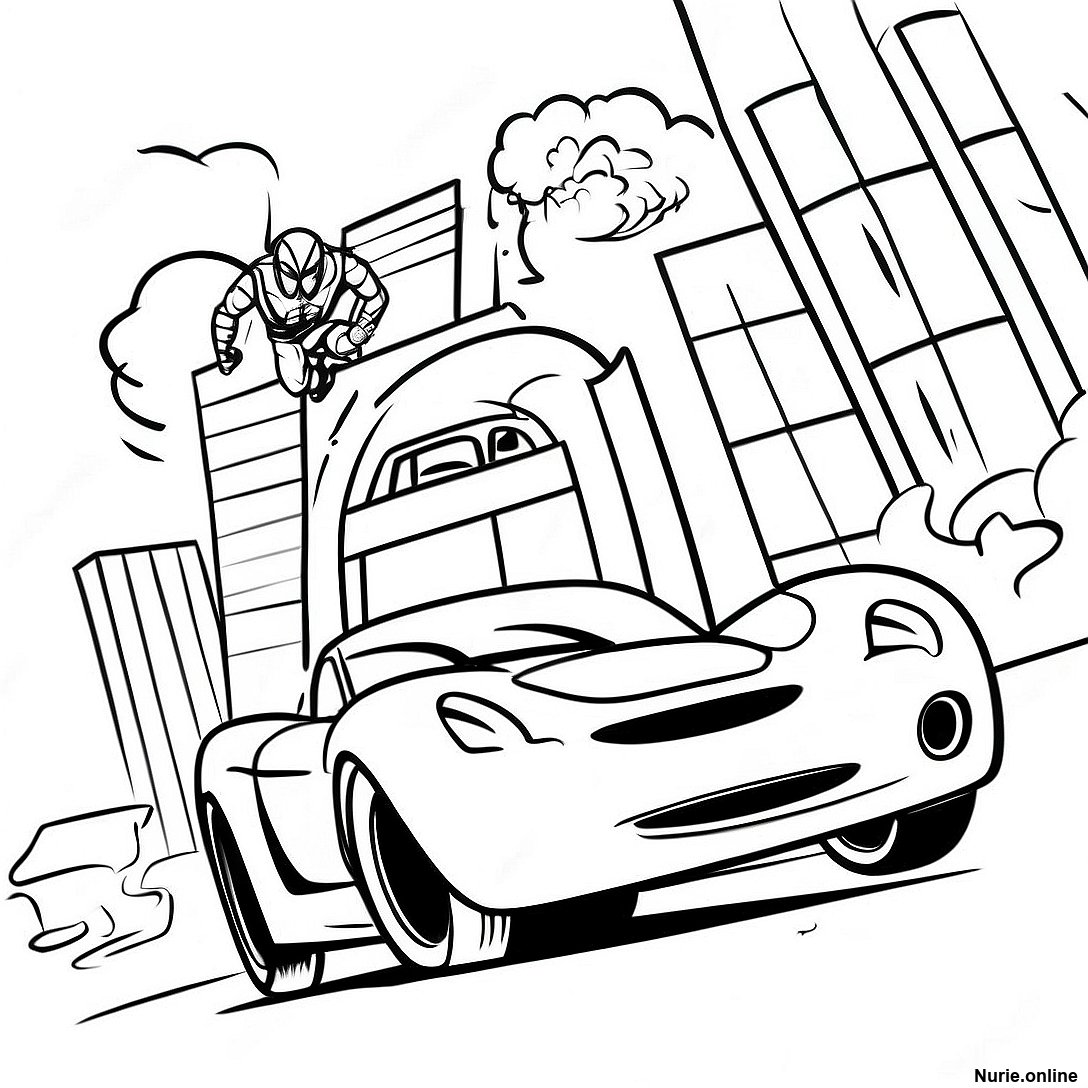 スパイダーマンの速い車 塗り絵の印刷可能なPDFをダウンロードする
