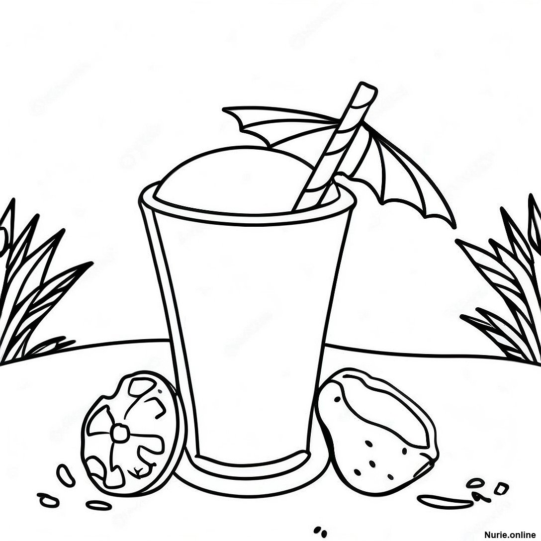 ストロー付きココナッツドリンクの塗り絵の印刷可能なPDFをダウンロードする
