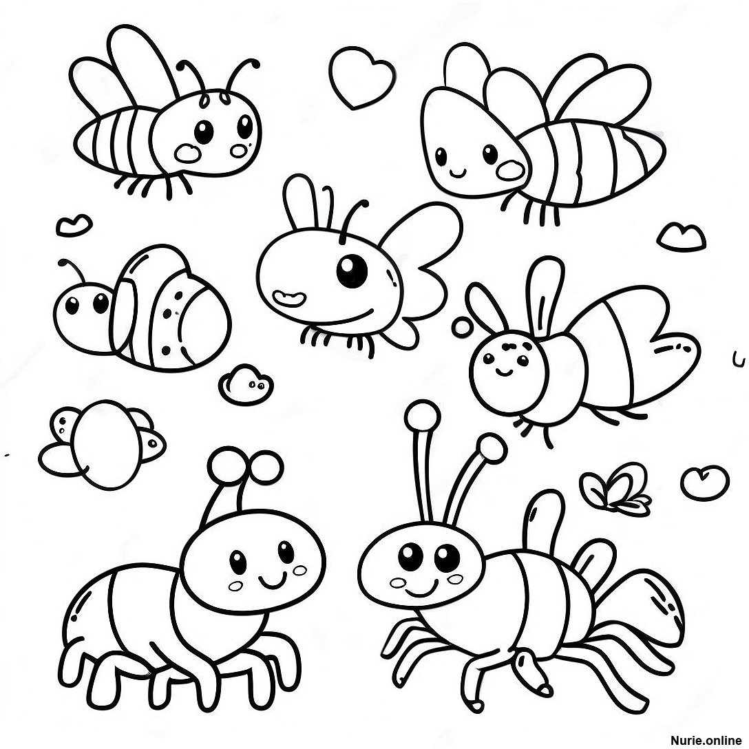 庭のかわいい昆虫の塗り絵の印刷可能なPDFをダウンロードする