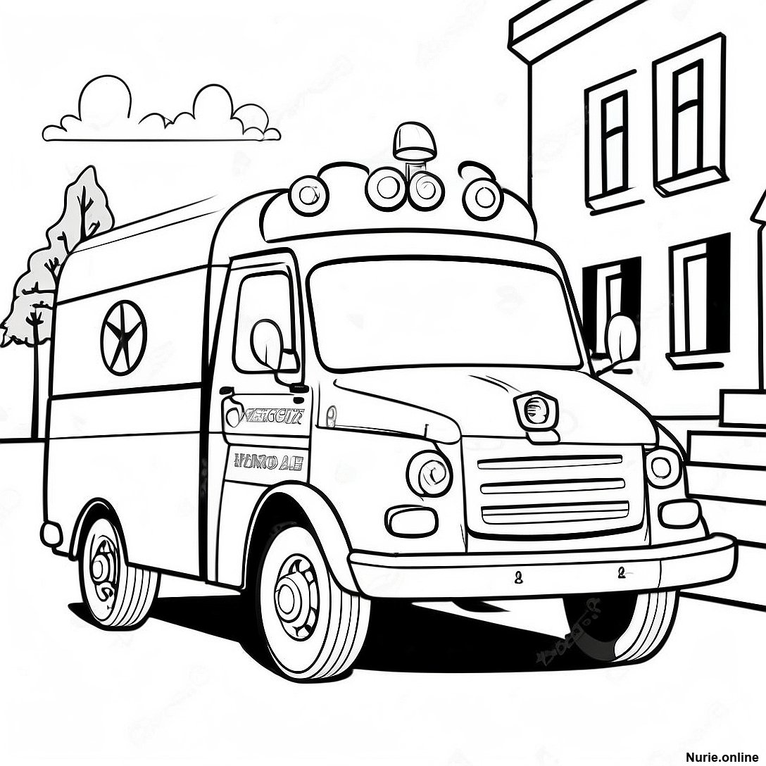 町を走るフレンドリーな救急車の塗り絵の印刷可能なPDFをダウンロードする