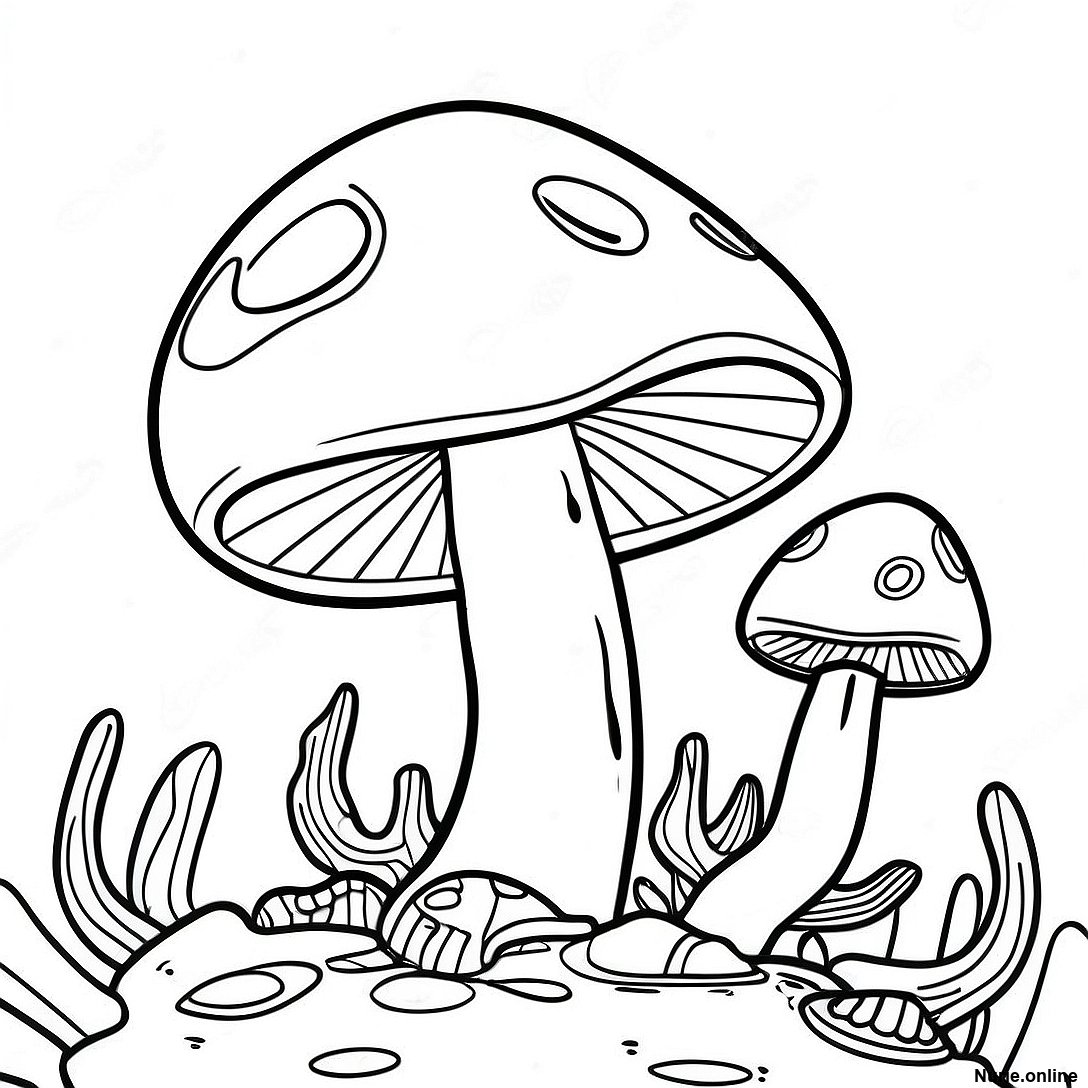 トリッピーなキノコの塗り絵の印刷可能なPDFをダウンロードする