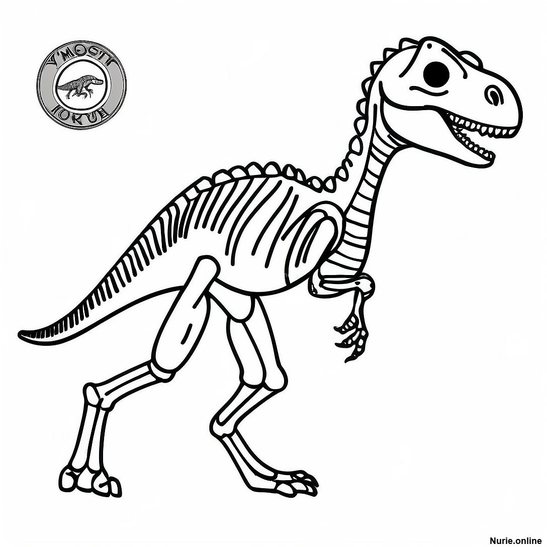 ヴェロキラプトルの化石スケルトン塗り絵の印刷可能なPDFをダウンロードする