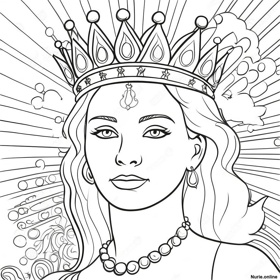 王冠をかぶった威厳ある女王の塗り絵の印刷可能なPDFをダウンロードする