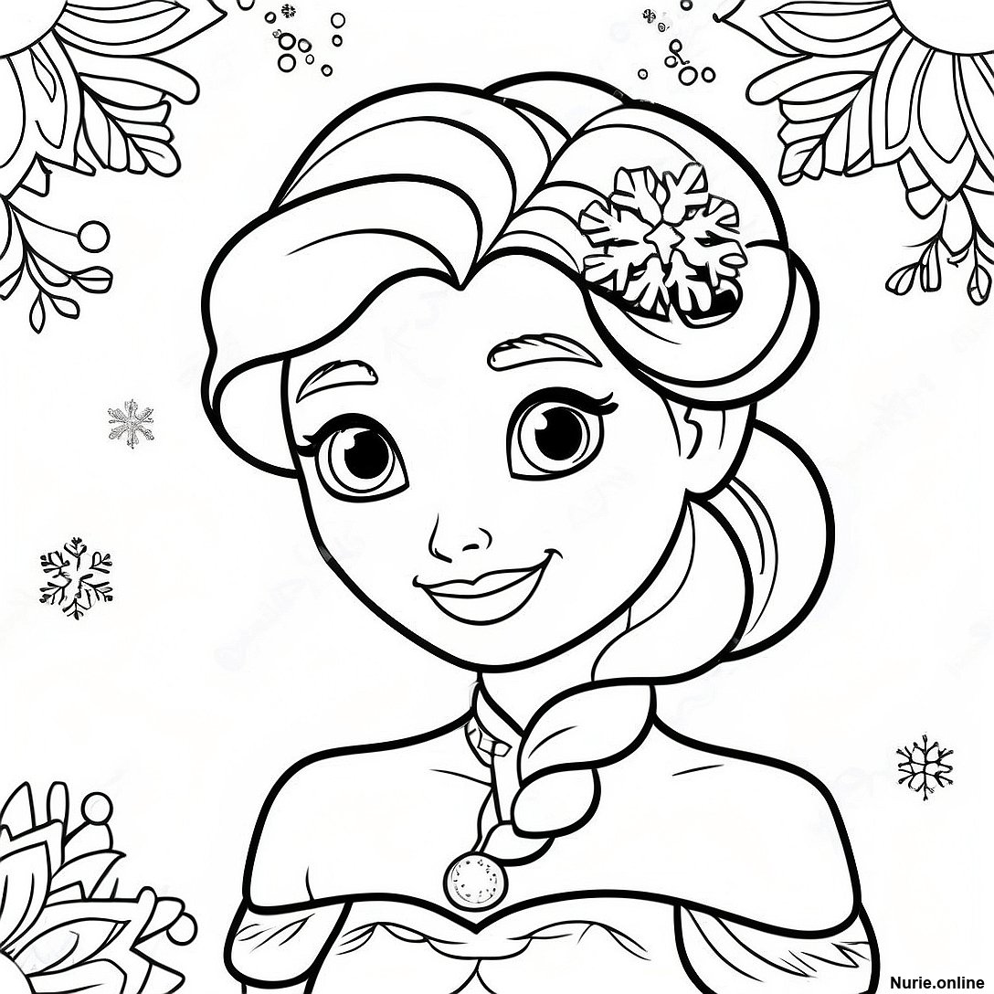 雪の結晶と一緒の魅力的なエルサの塗り絵の印刷可能なPDFをダウンロードする