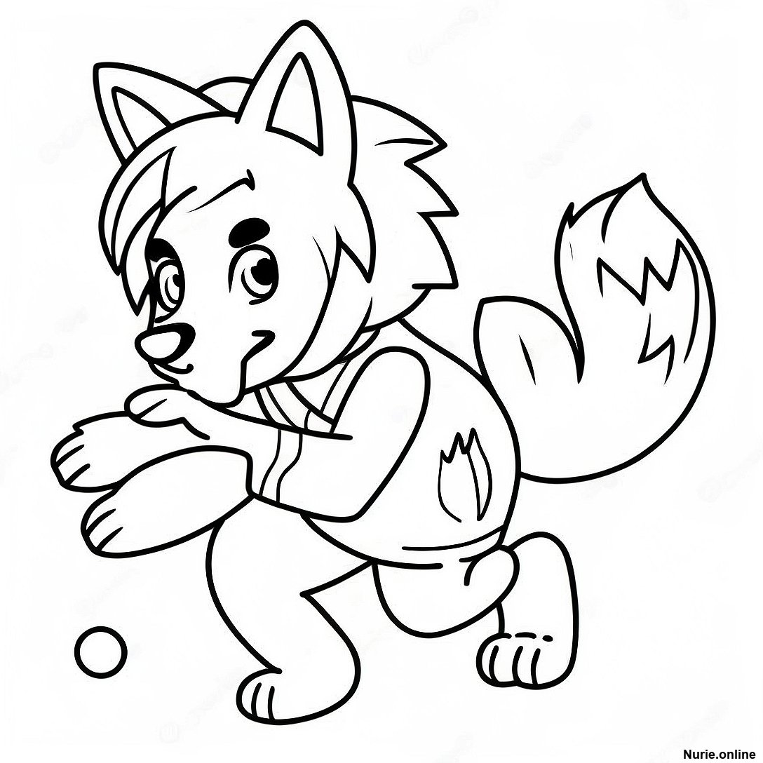 遊び心満載の狼のアニメ少女塗り絵ページ