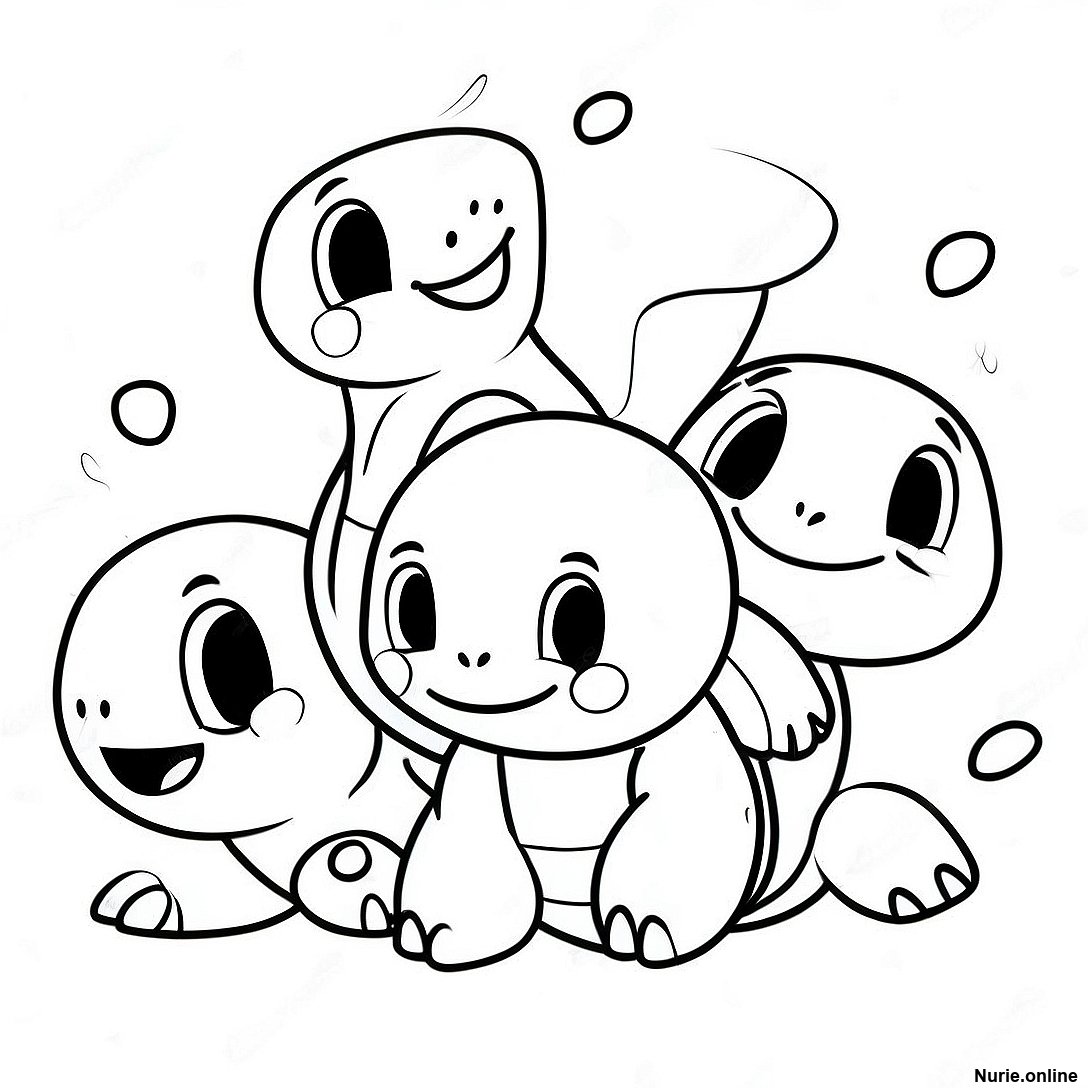 友達と遊ぶゼニガメの塗り絵の印刷可能なPDFをダウンロードする