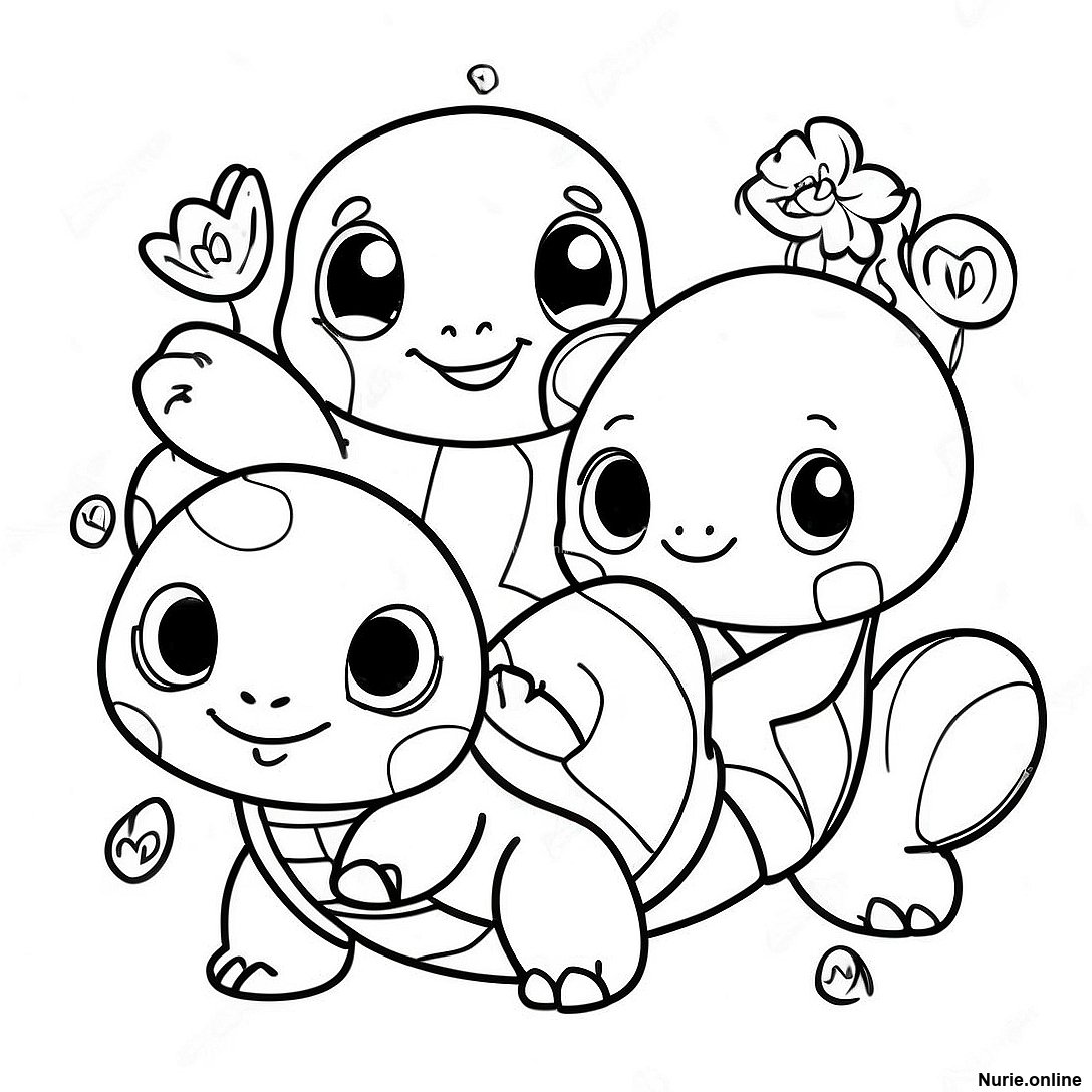 友達と遊ぶゼニガメの塗り絵の印刷可能なPDFをダウンロードする