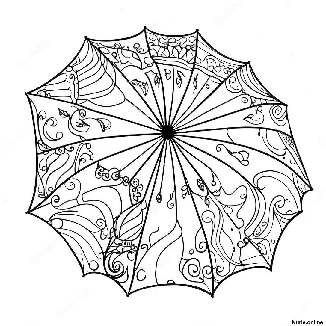ユニークな傘の塗り絵の印刷可能なPDFをダウンロードする