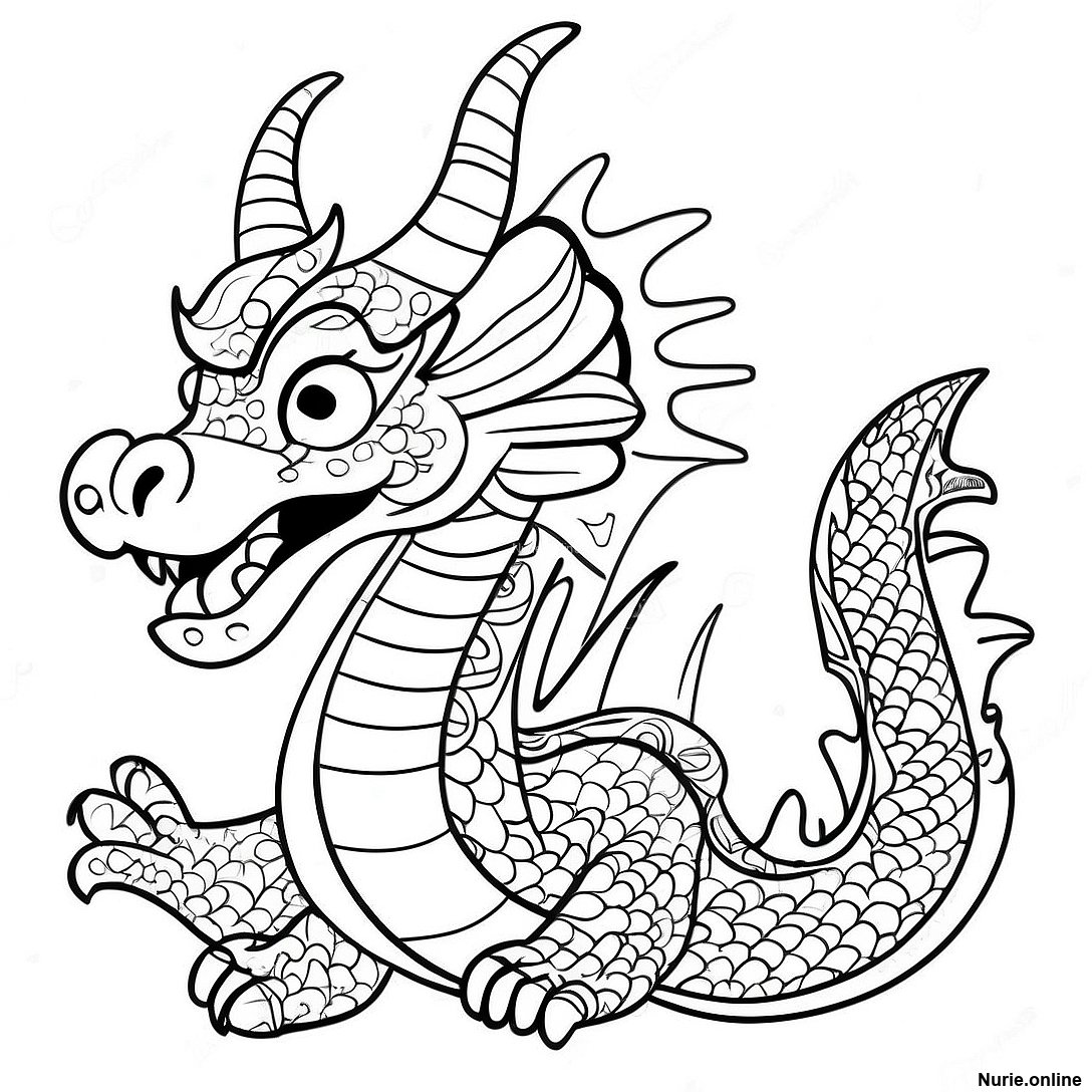 中国のドラゴン 塗り絵の印刷可能なPDFをダウンロードする
