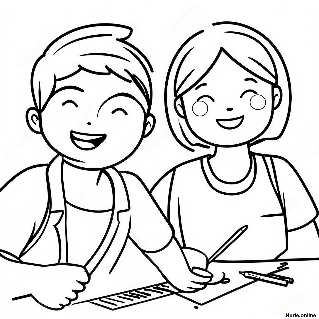 仲良しの友達が一緒に働く塗り絵の印刷可能なPDFをダウンロードする