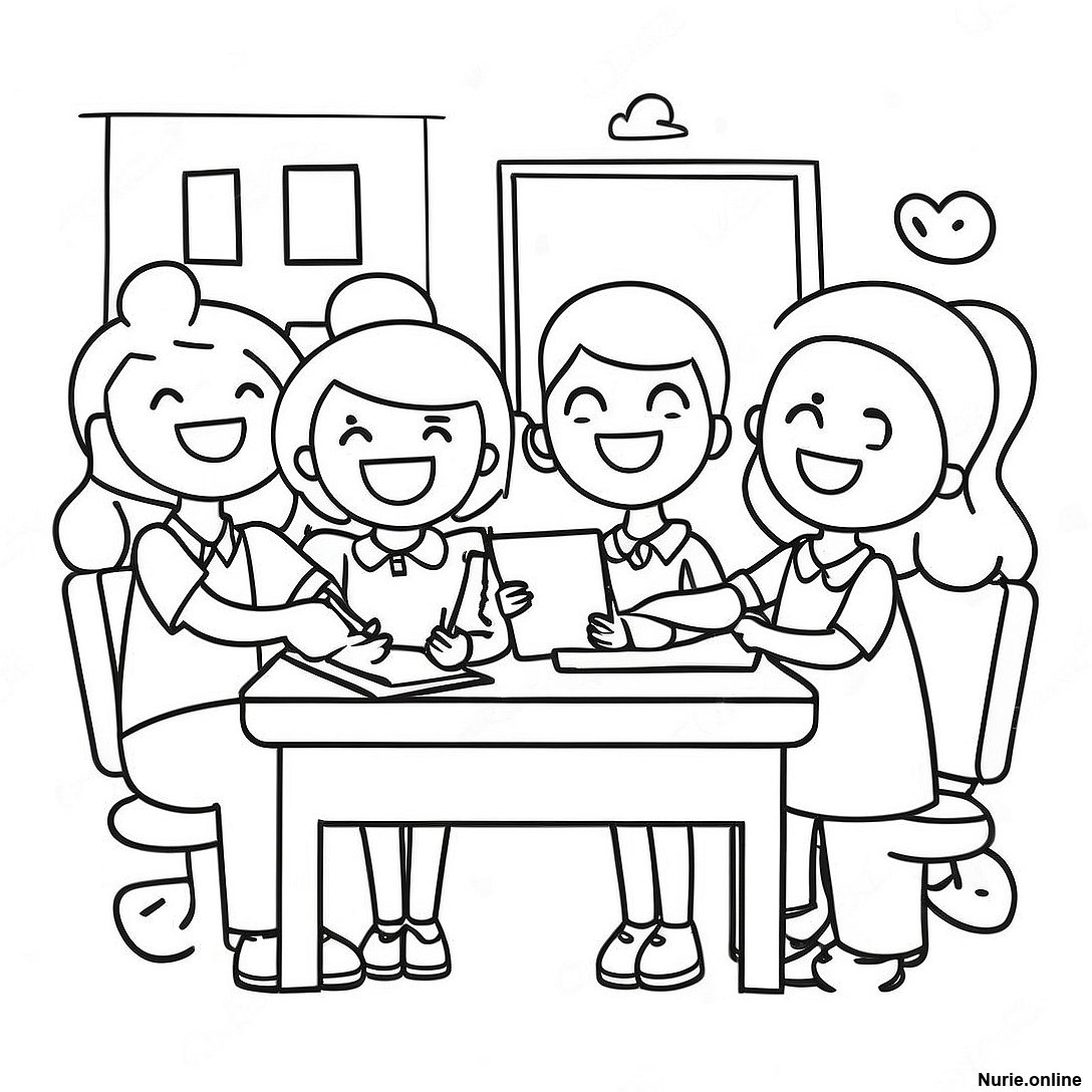 仲良しの友達が一緒に働く塗り絵の印刷可能なPDFをダウンロードする
