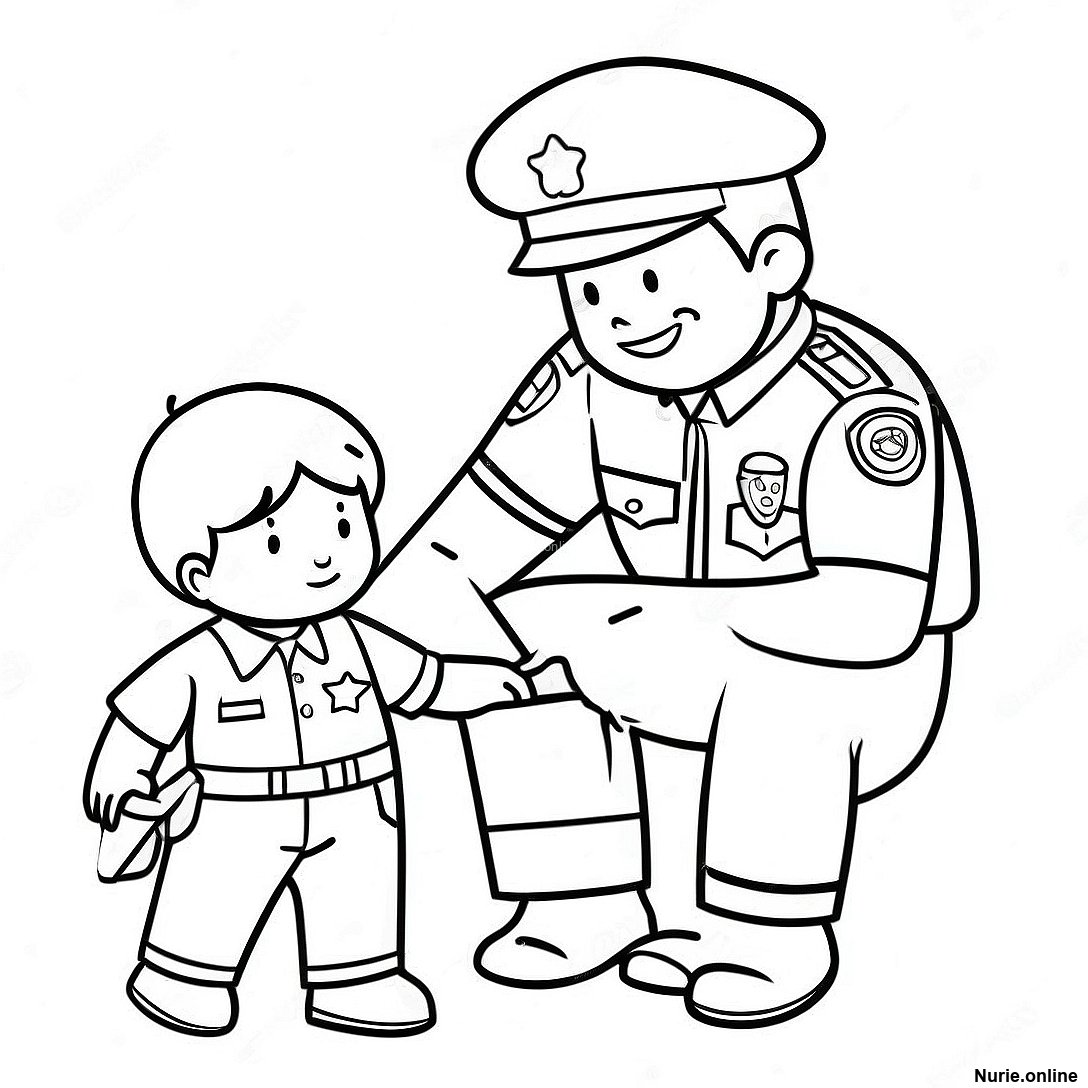 子供を助ける警察官 塗り絵の印刷可能なPDFをダウンロードする